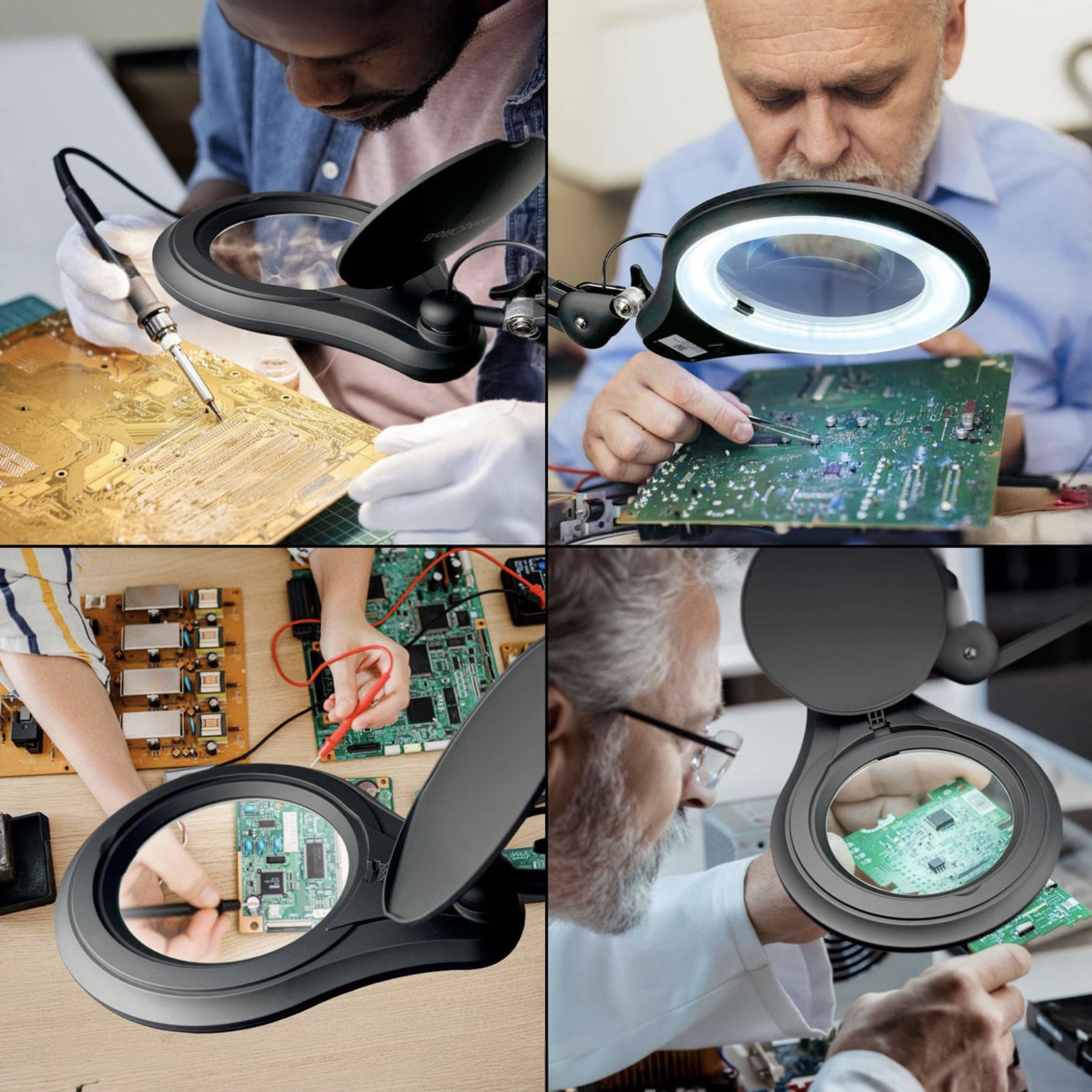 ESD Safe LED Magnifying Lamp is ergonomically designed for SMT/PCB inspection for large viewing areas and to reduce stress. The large 5″, 2.25x magnification optical lens provides enough power for quick inspection, rework, and assembly for micro-electronic and medical device industries.